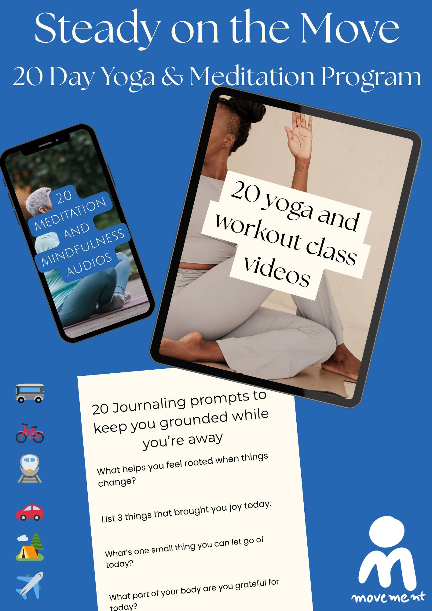 Join the waitlist for Steady on the Move. A self-paced yoga + mindfulness toolkit designed for travelers, those who crave routine support, and anyone who wants to stay connected to their body while life is shifting.
